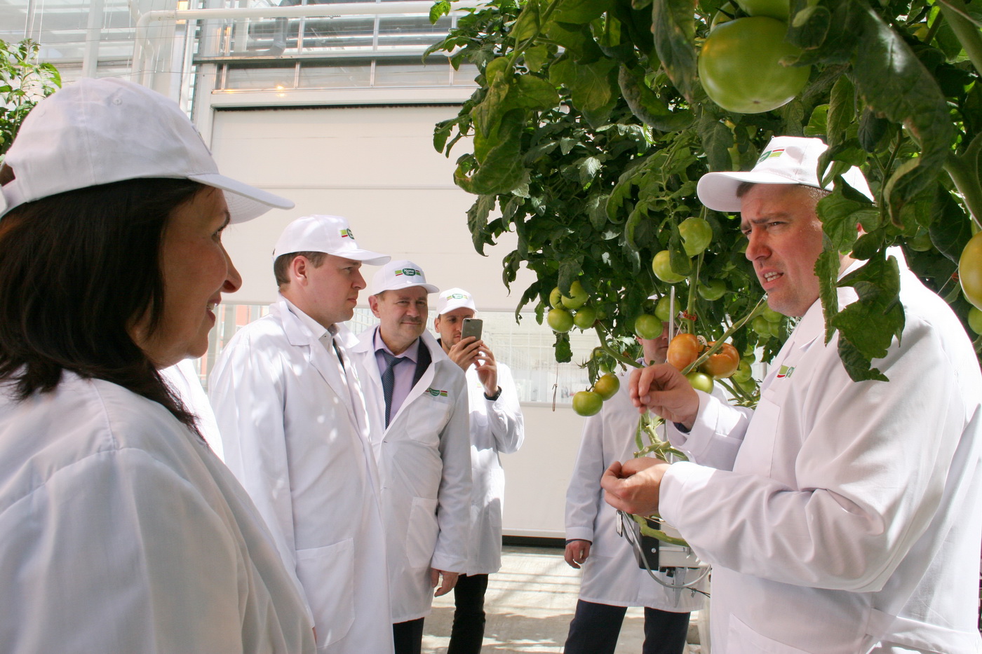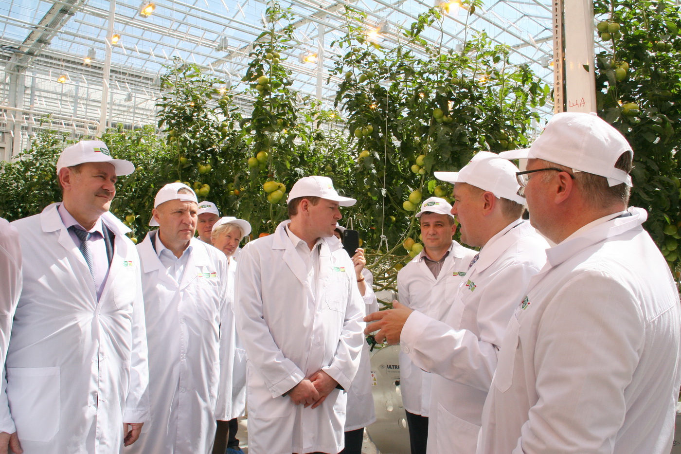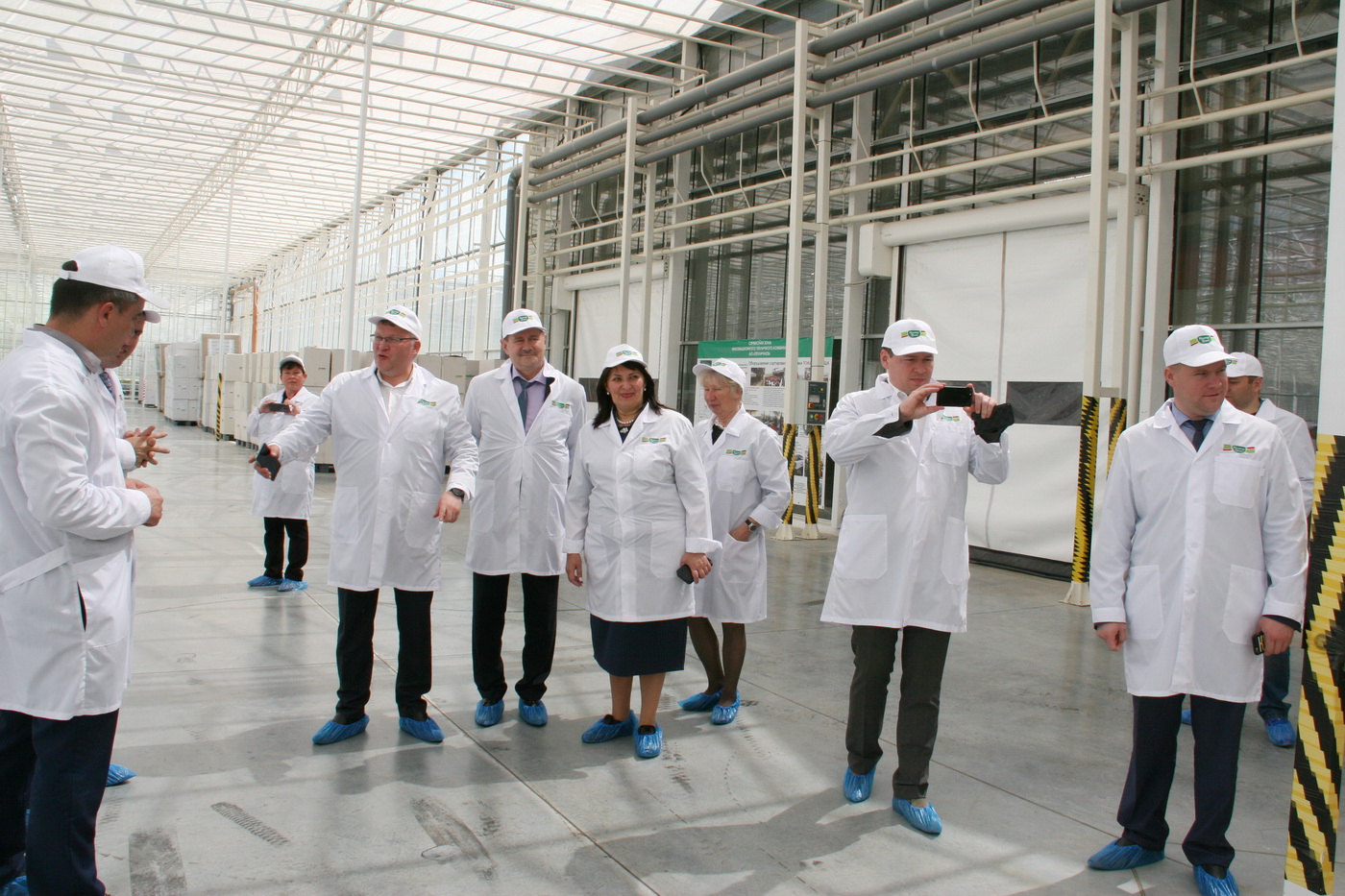 Генеральный директор «УГМК-АГРО» Илья Бондарев провел экскурсию по площадям АО «Тепличное», в ходе которой рассказал депутатам об инновационной технологии выращивания томатов, огурцов и земляных культур в защищенном грунте. Суть ее в то, что салаты и овощи растут в стальных желобах на минераловатных матах с применением полностью автоматизированной компьютерной системы поддержания климата, капельного полива и углекислоты. Благодаря такой технологии обеспечивается круглогодичное  плодоношение, а также значительная прибавка в урожае и высокое качества продукции. Депутатам продемонстрировали работу пульта управления теплиц,  газогенераторной станции, обеспечивающей бесперебойное снабжение всего комплекса электроэнергией, погрузочной линии.