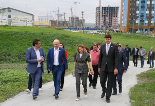 Представительная делегация депутатов областного парламента вначале проинспектировала знаковые объекты самого динамично развивающегося района уральской столицы. Депутаты побывали в современном здании детской поликлиники, оснащенном высококлассным  медицинским оборудованием. Поликлиника рассчитана на 18 тысяч маленьких жителей микрорайона. Также депутаты осмотрели самую крупную  в микрорайоне общеобразовательную школу №23.  Увидели бассейн для начального обучения плаванию, пищеблок, рассчитанный на одновременное обслуживание 500 учащихся, концертный зал и информационный центр. Участники совещания также побывали на  строительной площадке, где планируется возведение важных социальных объектов.