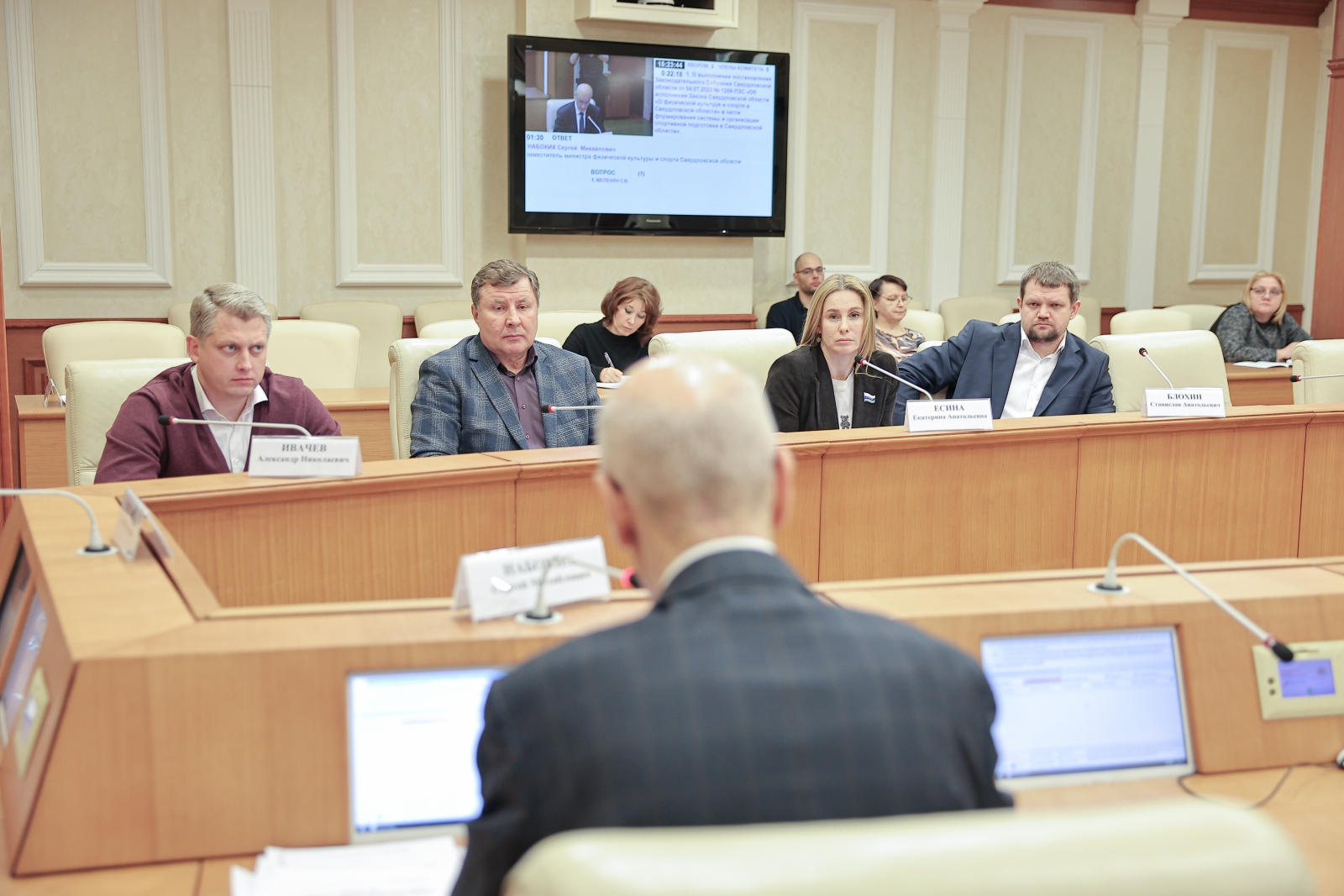 Был рассмотрен вопрос о выполнении постановления Законодательного Собрания Свердловской области от 4.07.2023 № 1266-ПЗС «Об исполнении Закона Свердловской области «О физической культуре и спорте в Свердловской области» в части формирования системы и организации спортивной подготовки в Свердловской области».