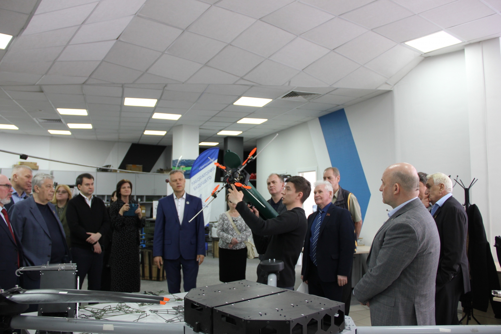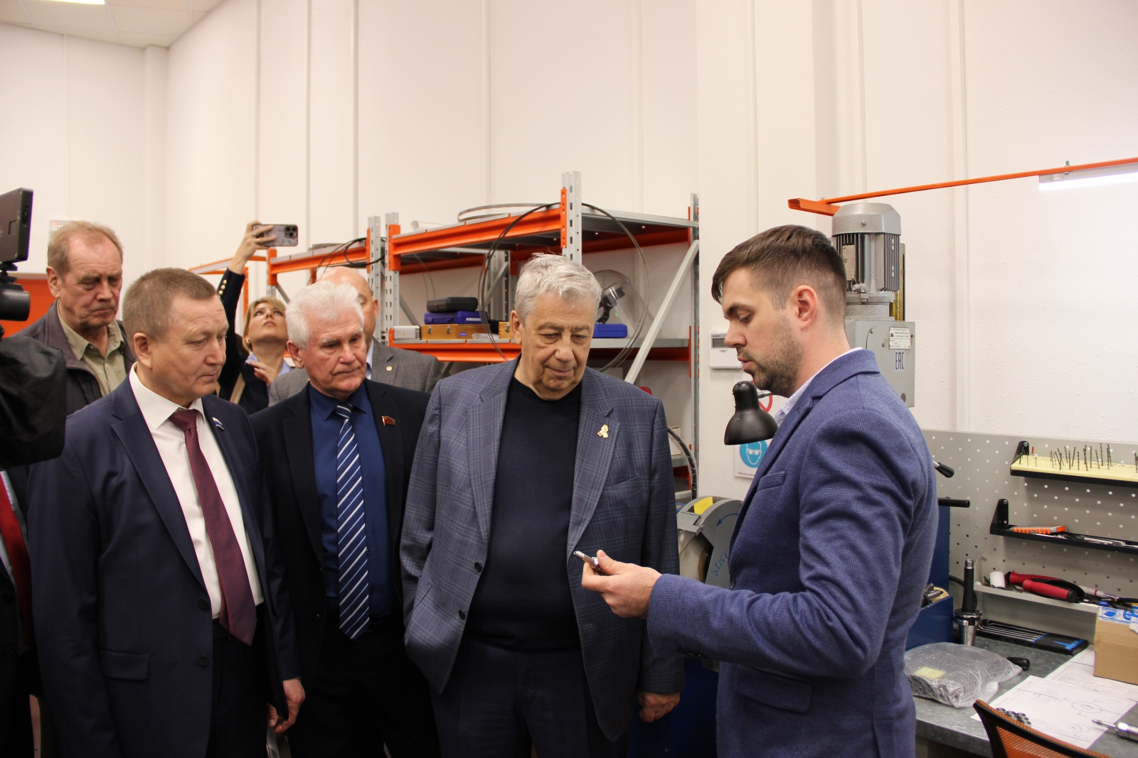В технопарке «Университетский» депутаты осмотрели площадку учебного полигона Уральского политехнического колледжа – Межрегиональный центр компетенций, где реализуется проект «Разработка образовательных программ и обучение работе на высокотехнологичном оборудовании»; предприятия «Лаборатория Будущего», на котором разработана автоматическая система технического обслуживания электросетей «Канатоход»; акционерного общества «ГЕОПТИКС», сотрудники которого занимаются разработкой технологии комплексного волоконно-оптического непрерывного мониторинга распределённых параметров нефтяных и газовых скважин; предприятия «Биомикрогели», где на основе микрогелей полисахаридов создаются экологичные средства для очистки оборотных и сточных вод; лабораторию «Реиннольц», специализирующуюся на выпуске высокотехнологичного энергоэффективного оборудования и выпарной техники.