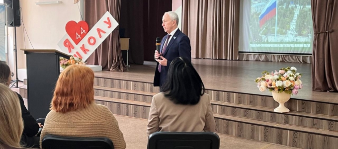 В Нижнем Тагиле Вячеслав Погудин встретился с педагогическим коллективом школы № 44 им. народного учителя Г.Д.Лавровой. Во встрече приняли участие директор школы Наталья Самарджева и представитель управления образования города Татьяна Басова