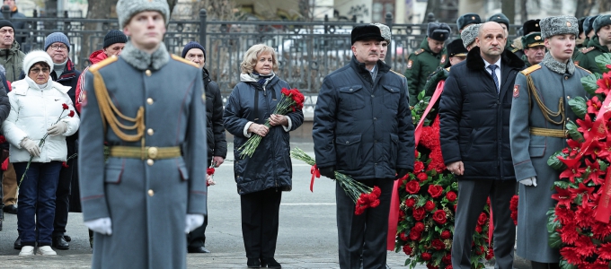Торжественная церемония возложения цветов к памятнику Георгию Жукову состоялась в Екатеринбурге 2 декабря в ознаменование дня основания Центрального военного округа.