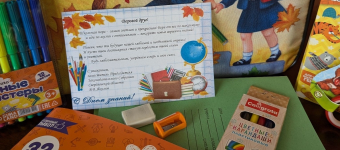 Парламентарии ежегодно участвуют в традиционной всероссийской акции «Собери ребёнка в школу», которую проводит партия «Единая Россия», и помогают многодетным и малообеспеченным семьям подготовить школьников к началу нового учебного года