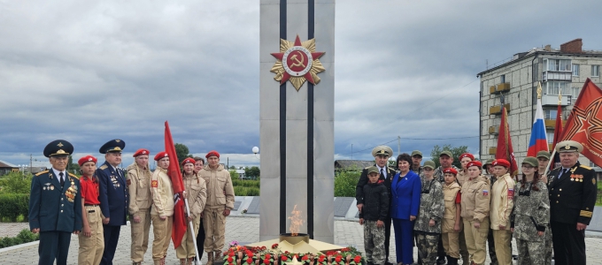В парке Победы у Мемориала Памяти посёлка Зайково состоялась церемония зажжения Вечного огня, привезённого из Волгограда с Мамаева Кургана.
