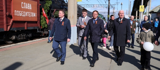 Парламентарий участвовал в торжественной встрече легендарного «Эшелона Победы» на железнодорожной станции Каменск-Уральский.