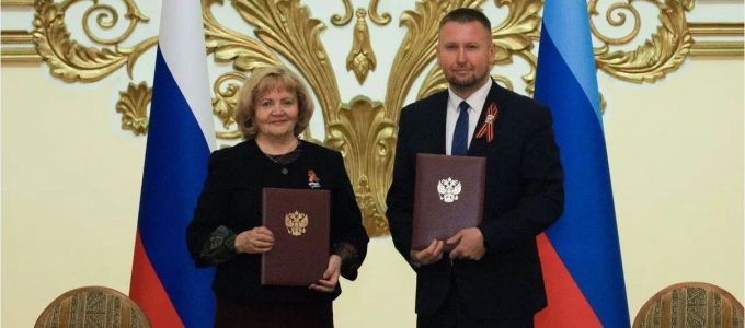 Председатель Законодательного Собрания Свердловской области Людмила Бабушкина и председатель Народного Совета Луганской Народной Республики Денис Мирошниченко подписали межпарламентское соглашение, направленное на сотрудничество и обмен опытом в сфере законотворчества