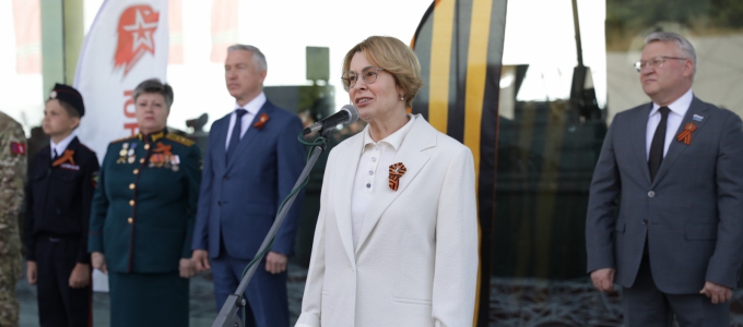 В Камышлове председатель Законодательного Собрания Свердловской области Людмила Бабушкина вручила удостоверение, специальную ленту, знак о присвоении звания «Почётный гражданин Свердловской области» ветеранам Великой Отечественной войны, а также поприветствовала участников торжественного мероприятия, посвящённого 80-летию Победы.
