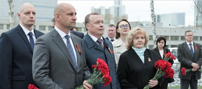 Председатель Законодательного Собрания Свердловской области Людмила Бабушкина возложила цветы к стеле «Город трудовой доблести» в преддверии Дня Победы в Екатеринбурге. Участие в торжественной церемонии приняли полномочный представитель Президента РФ в УрФО Артём Жога, глава Екатеринбурга Алексей Орлов, а также депутаты областного парламента