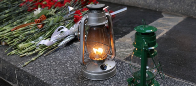 Сергей Никонов, Виктор Бабенко и Елена Чечунова приняли от волгоградцев лампаду, зажжённую от Вечного огня на Мамаевом кургане.