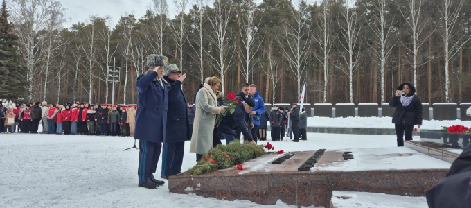 Депутаты Елена Чечунова и Вячеслав Погудин приняли участие в памятной акции, посвящённой годовщине Победы в Сталинградской битве, и возложили цветы к Вечному огню на Широкореченском военно-мемориальном комплексе
