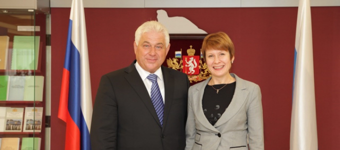 Председатель Областной Думы Елена Чечунова, заместитель председателя Областной Думы Анатолий Сухов, заместитель председателя Палаты Представителей Владимир Никитин, депутаты Владимир Машков и Альберт Абзалов обсудили с гостями из Киева вопросы межпарламентского и экономического сотрудничества двух регионов.