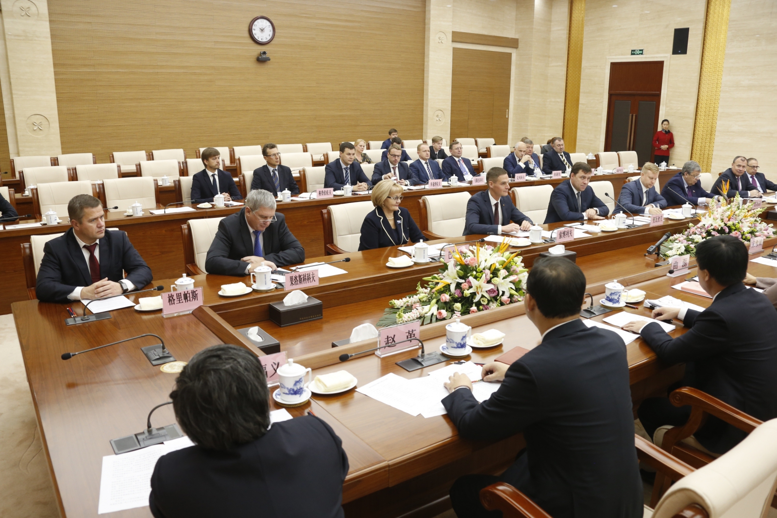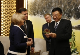 Председатель Законодательного Собрания Свердловской области Людмила Бабушкина в городе Харбине (КНР) в ходе официального визита делегации Свердловской области приняла участие во встрече с первым секретарем харбинского городского комитета Коммунистической партии Китая Чэнь Хайяо и мэром Харбина Сун Сибинем.