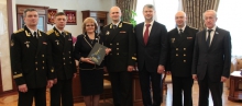 Делегацию моряков Северного флота принимали сегодня депутаты Законодательного Собрания Свердловской области. За большой вклад в укрепление обороноспособности России спикер парламента Людмила Бабушкина вручила начальнику штаба 31-й дивизии атомных подводных лодок Северного флота Алексею Сысуеву и командиру атомного подводного крейсера «Екатеринбург» Николаю Цибулько золотые знаки Законодательного Собрания, а командиру второго экипажа атомного подводного крейсера «Екатеринбург» Виктору Петрову серебряный знак. Также гости горячо приняли предложение Людмилы Бабушкиной по развитию сотрудничества.