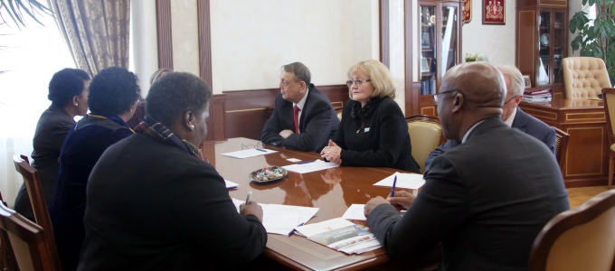 Председатель Законодательного Собрания Свердловской области Людмила Бабушкина провела рабочую встречу с делегацией Южно-Африканской Республики во главе с премьер-министром провинции Мпумаланга Рефилве Мтшвени и Чрезвычайным полномочным послом ЮАР в РФ Номасонто Сибанда-Туси. В мероприятии также приняли участие заместитель председателя ЗССО Анатолий Сухов, директор департамента дорожного строительства и общественного транспорта провинции Мпумаланга Синдисиве Ксулу и советник Чрезвычайного и полномочного посла ЮАР в РФ Мадива Мудимели.
