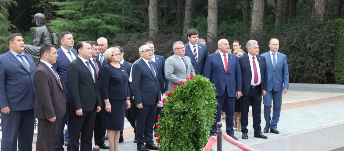 Губернатор Евгений Куйвашев, председатель Законодательного Собрания Людмила Бабушкина, депутаты Сергей Никонов, Вячеслав Вегнер, МИхаил Зубарев и члены делегации Свердловской области 11 сентября в Баку возложили цветы к могиле общенационального лидера Азербайджанской Республики, третьего Президента государства Гейдара Алиева и к Вечному огню. В торжественно-траурной церемонии принял участие заместитель министра экономики Азербайджана Сахиб Мамедов.
