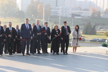 Председатель Законодательного Собрания Свердловской области Людмила Бабушкина, депутаты Игорь Аксенов, Михаил Ершов, Вячеслав Погудин, Елена Трескова в составе делегации Свердловской области, которую возглавляет губернатор Евгений Куйваше, возложили венок и цветы к стеле «Минск – город-герой».