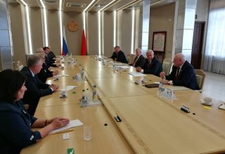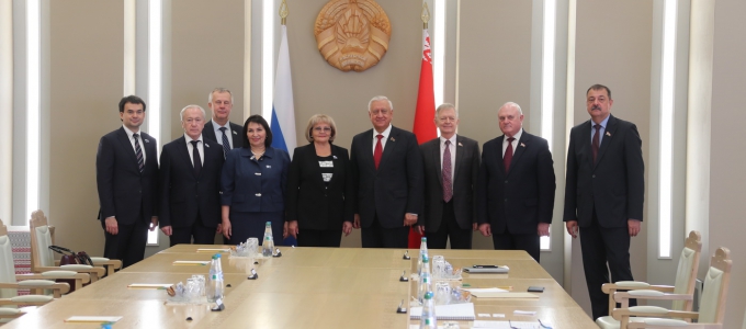 Председатель Законодательного Собрания Людмила Бабушкина и депутаты Игорь Аксенов, Михаил Ершов, Вячеслав Погудин, Елена Трескова встретились с Председателем Совета Республики Национального собрания Беларуси Михаилом Мясниковичем.