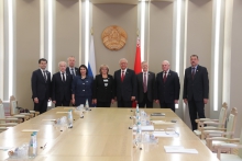 Председатель Законодательного Собрания Людмила Бабушкина и депутаты Игорь Аксенов, Михаил Ершов, Вячеслав Погудин, Елена Трескова встретились с Председателем Совета Республики Национального собрания Беларуси Михаилом Мясниковичем.