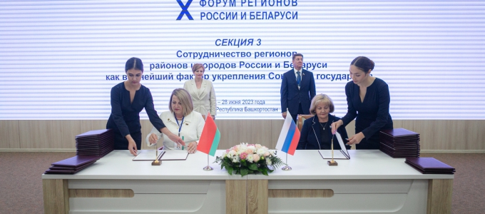 В рамках проходящего в Уфе X Форума регионов России и Беларуси состоялась церемония подписания соглашения о сотрудничестве между Законодательным Собранием Свердловской области и Гродненским областным Советом депутатов (Беларусь).