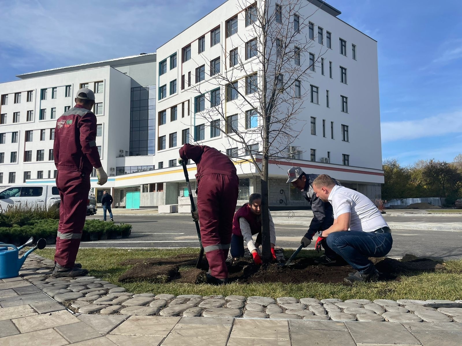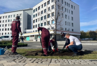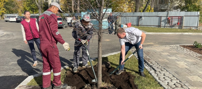Завершается благоустройство территории Детской городской больницы №15. Владимир Смирнов внёс вклад в озеленение и посадил липу.