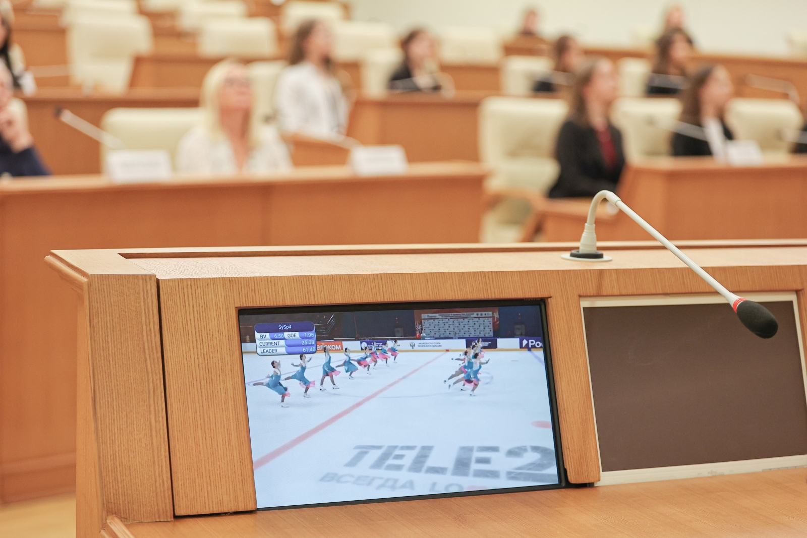 Председатель Законодательного Собрания Свердловской области Людмила Бабушкина 15 октября встретилась со спортсменками и тренерским составом екатеринбургской команды по синхронному фигурному катанию «Юность». Спортсмены и их наставники пришли в областной парламент в преддверии нового спортивного сезона.