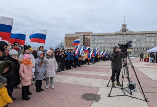 Торжественный настрой поддержали выступления артистов. Символом единства каменцев с многонациональным народом России стал пятидесятиметровый триколор, который парламентарии вместе с молодёжью и другими горожанами развернули на центральной площади Каменска-Уральского.