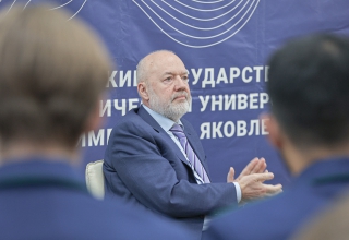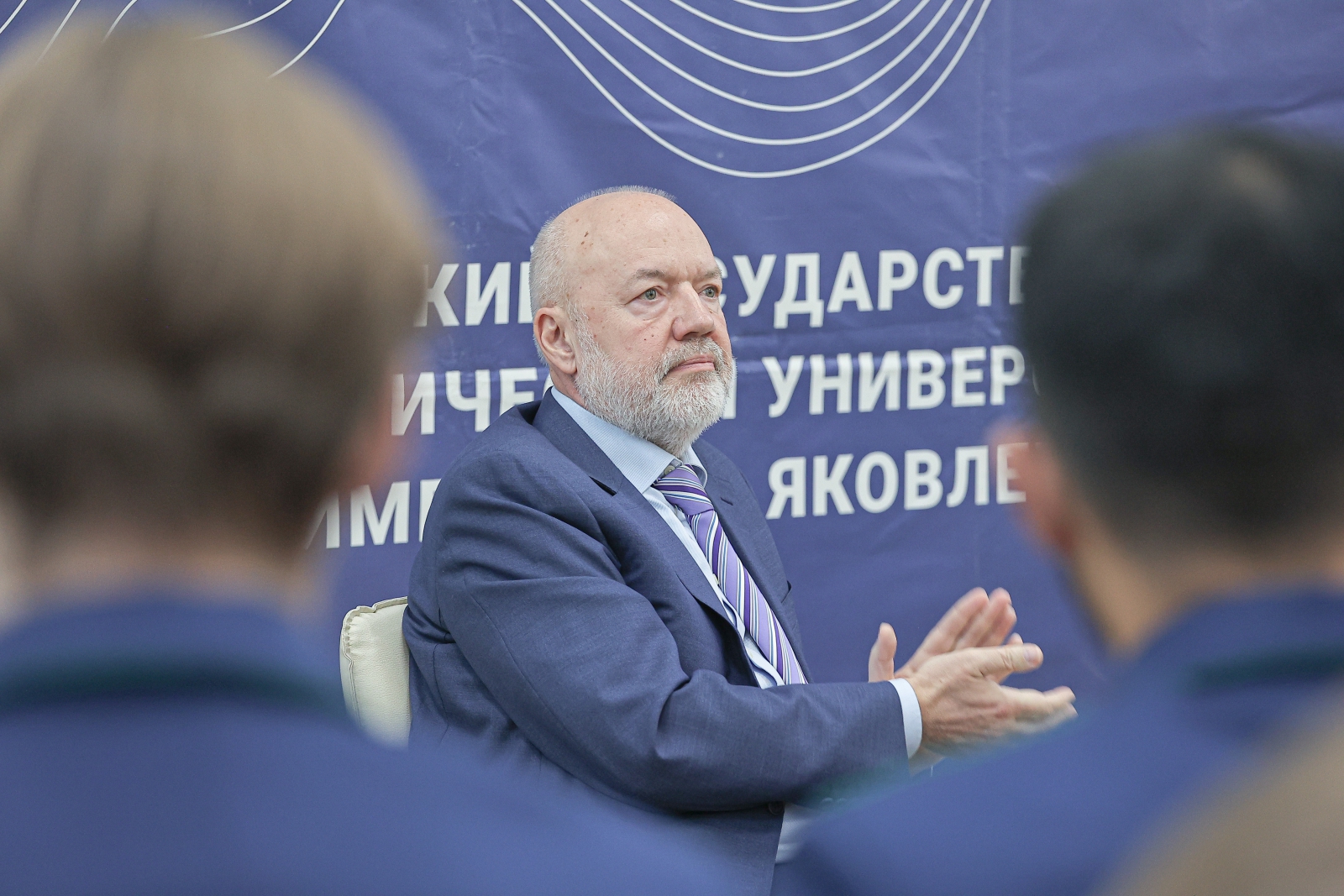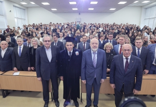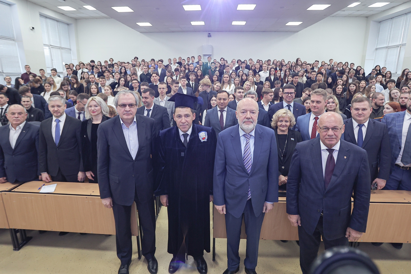 В конце встречи ректор университета Владимир Бублик поздравил Евгения Владимировича Куйвашева с присвоением звания «почётный профессор» вуза. Участники встречи сделали общее фото со студентами.