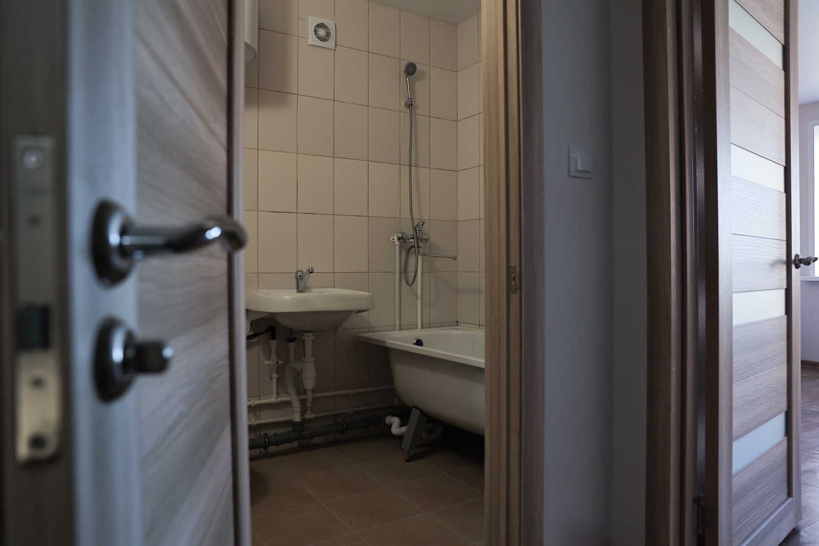 Новосёл Надежда Фролова работает тренером-преподавателем в районной спортивной школе. Новой квартирой довольна и благодарит власти за своё переселение из старого жилья.