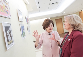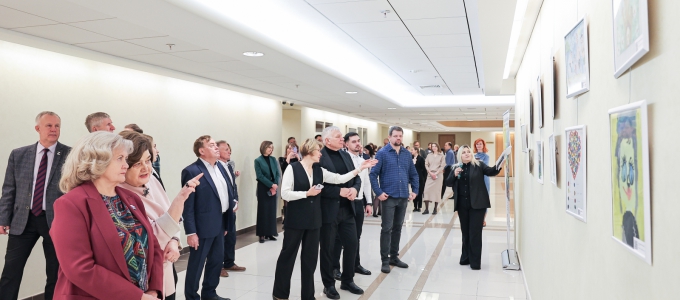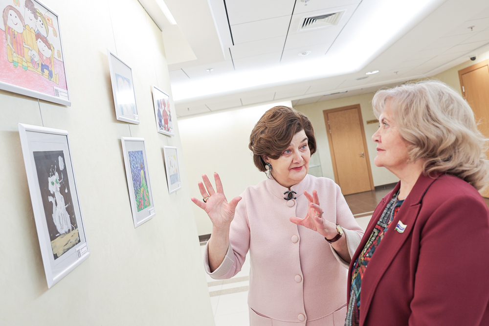 «В стенах Законодательного Собрания стало немного светлее. Сегодня у нас впервые открылась выставка рисунков «солнечных детей», детей с синдромом Дауна. Ребята и их родители показали на открытии выставки трогательную пантомиму. Это было очень душевное представление, как, впрочем, и сами рисунки. Каждая работа буквально излучает тепло и свет. Сегодняшняя особенная выставка называется «На кончике кисти». Рисуют дети со своими наставниками, а чаще с родителями, которые всю свою жизнь посвящают особой заботе о них, социализации, лечению», – написала в своём телеграм-канале председатель Законодательного Собрания Свердловской области Людмила Бабушкина.
