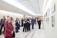 «В стенах Законодательного Собрания стало немного светлее. Сегодня у нас впервые открылась выставка рисунков «солнечных детей», детей с синдромом Дауна. Ребята и их родители показали на открытии выставки трогательную пантомиму. Это было очень душевное представление, как, впрочем, и сами рисунки. Каждая работа буквально излучает тепло и свет. Сегодняшняя особенная выставка называется «На кончике кисти». Рисуют дети со своими наставниками, а чаще с родителями, которые всю свою жизнь посвящают особой заботе о них, социализации, лечению», – написала в своём телеграм-канале председатель Законодательного Собрания Свердловской области Людмила Бабушкина.