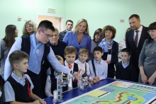 На презентации обновлённого корпуса детского центра заместитель главы Каменска-Уральского Денис Нестеров и директор ЦДО Галина Войтюшенко поблагодарили парламентария и постоянного социального партнёра – компанию РУСАЛ за помощь в открытии дополнительной площадки для художественно-технического развития юных каменцев.
