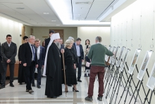 Председатель Законодательного Собрания Свердловской области Людмила Бабушкина и Митрополит Екатеринбургский и Верхотурский Евгений поприветствовали участников церемонии открытия выставки работ учащихся Детской художественной школы церковно-прикладного искусства и иконописи во имя Святого Преподобного Андрея Рублёва «Отечеству нашему пресветлые светильники».