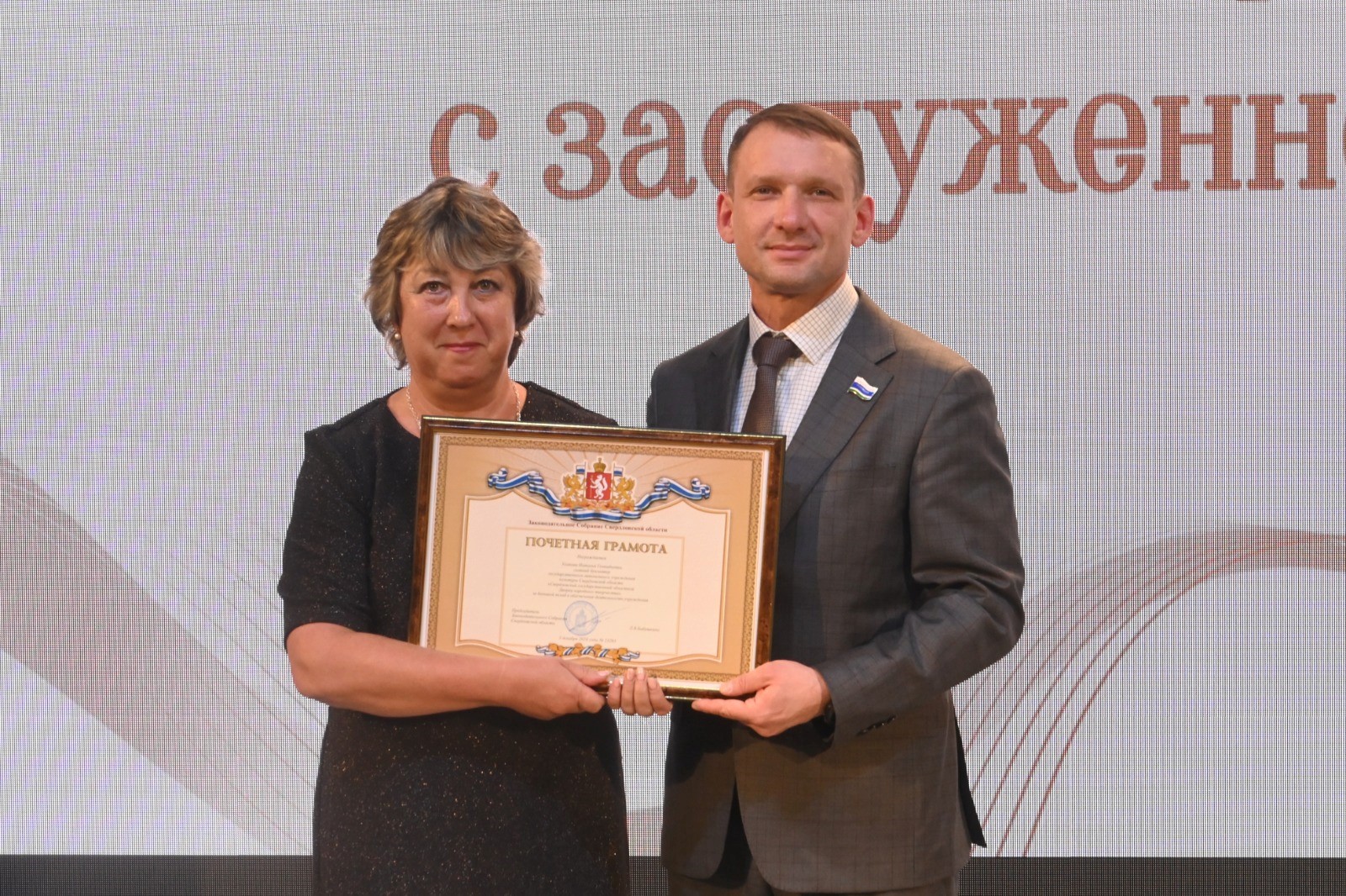 Здесь же состоялось поздравление коллектива Свердловского государственного областного Дворца народного творчества с 95-летием. Александр Каптюг вручил дипломы и благодарственные письма Законодательного Собрания Свердловской области заслуженным сотрудникам.