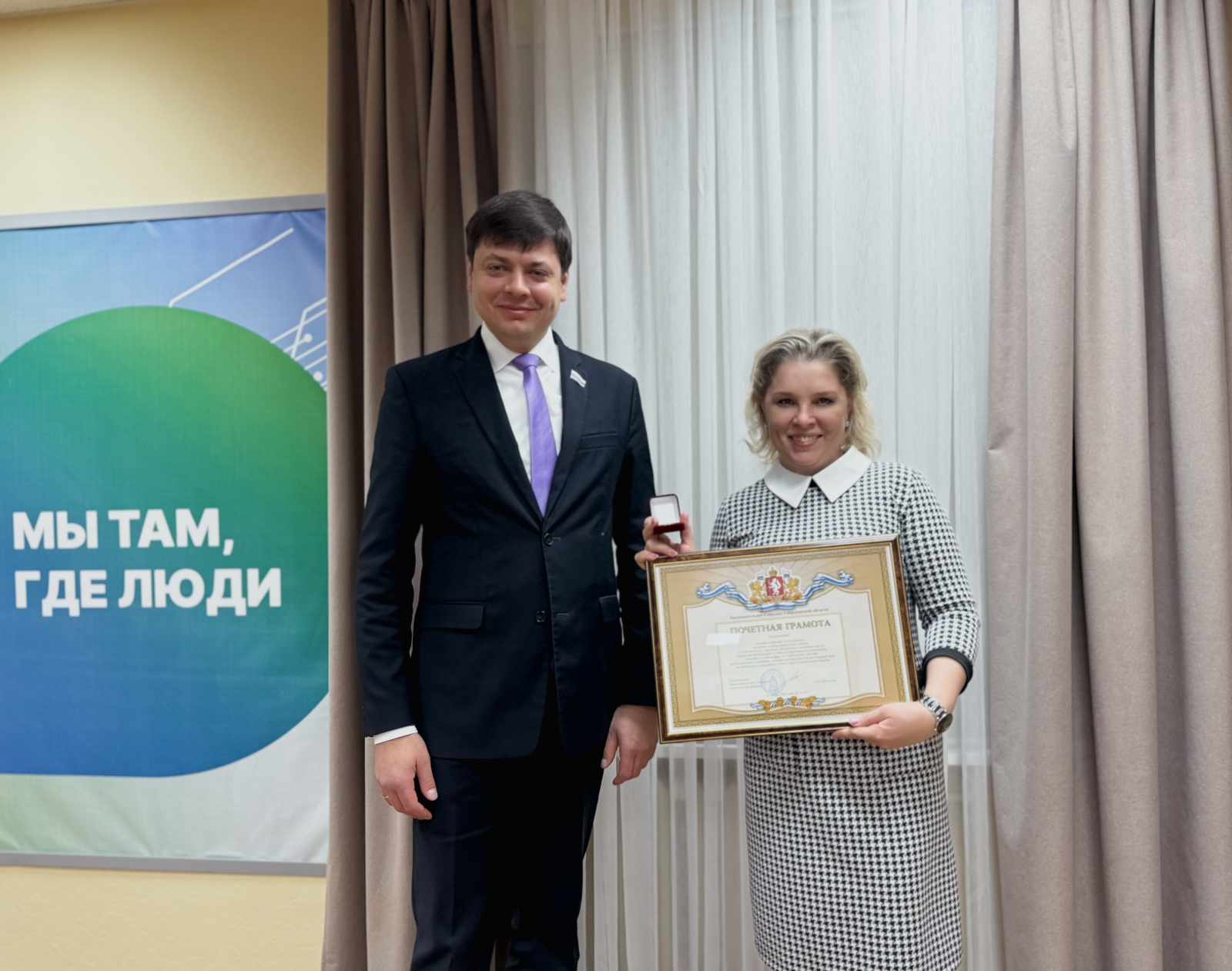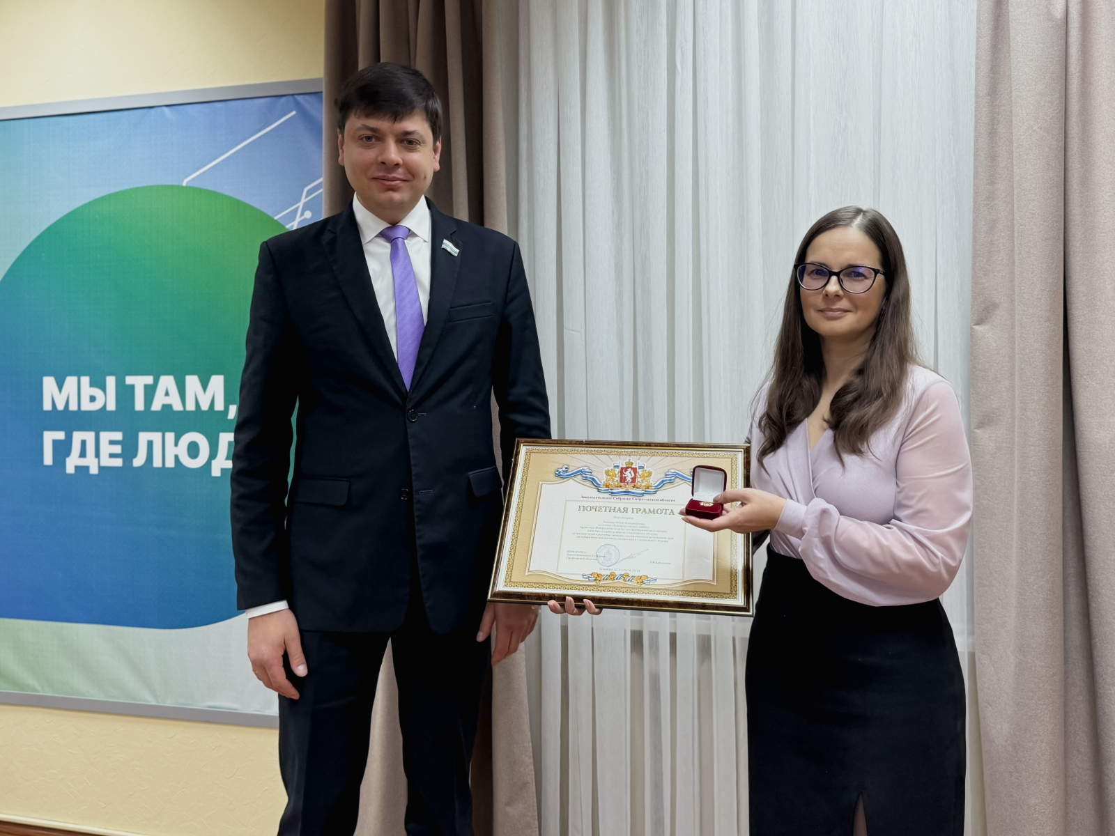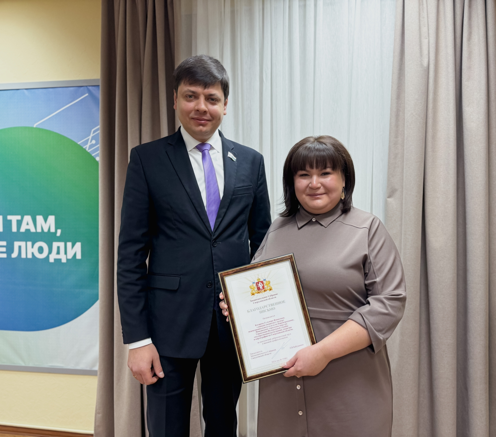 Депутат Михаил Зубарев по поручению председателя Законодательного Собрания Свердловской области Людмилы Бабушкиной вручил сотрудникам свердловского управления Росреестра почётные грамоты и благодарственные письма за достижения в гражданской службе и профессиональный вклад в развитие экономики региона. Мероприятие приурочено ко дню образования Федеральной службы государственной регистрации, кадастра и картографии.