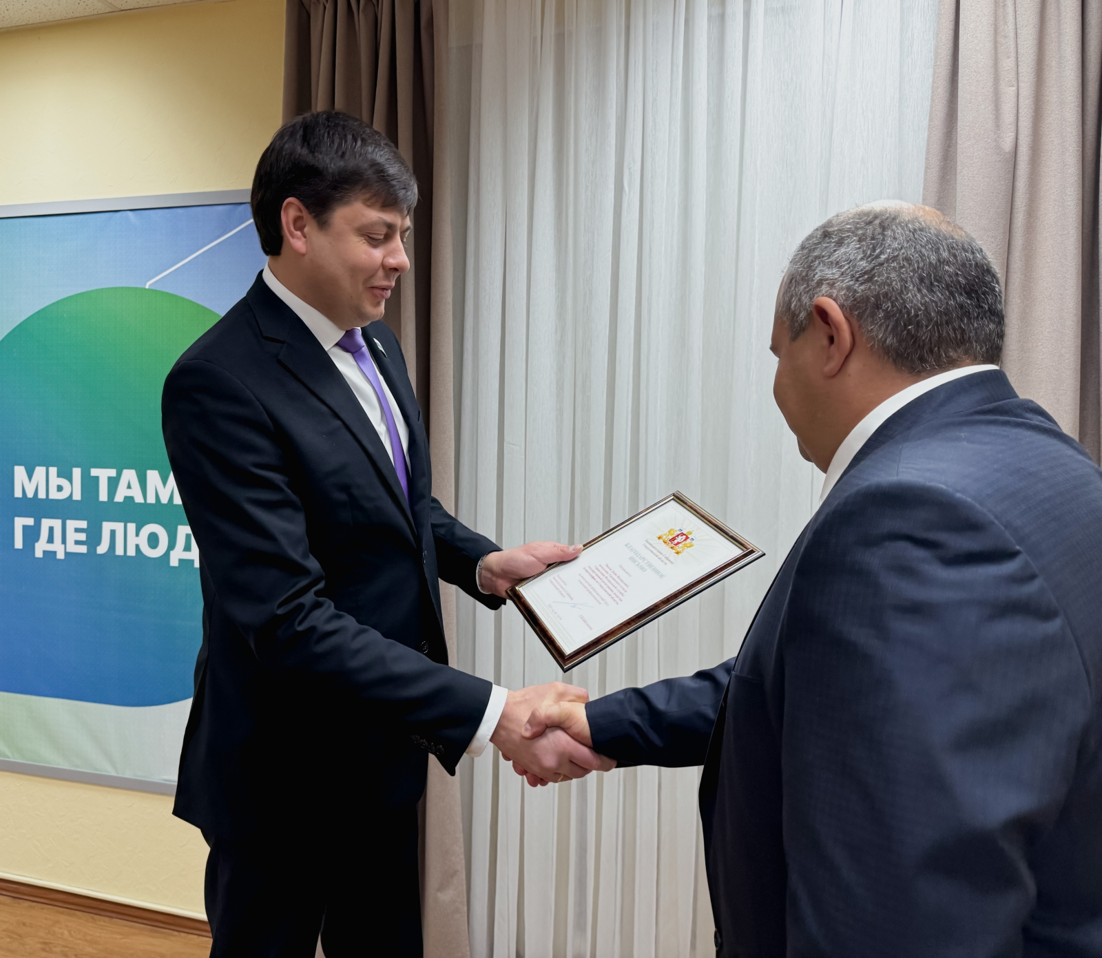 «По поручению Людмилы Бабушкиной и от имени депутатов позвольте вручить вам благодарственные письма и почетные грамоты. От всей души поздравляю вас с этими заслуженными наградами! Хочу отметить, что комитет по региональной политике и развитию местного самоуправления, который я возглавляю, тесно взаимодействует с вашим управлением. Вопросы упразднения территорий, создания новых населенных пунктов – здесь мы с вами работаем в тандеме, и я благодарю вас за ваш профессионализм. Удачи вам в вашей не легкой, но интересной работе. Уверен, нас ждет еще много совместных проектов», – сказал депутат Михаил Зубарев.
