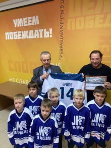 Говорили о развитии спорта. Недавно и в Нижнем Тагиле, и в регионе торжественно отмечали столетие отрасли. За профессиональные достижения сотрудникам учреждения вручены заслуженные награды. Михаил Ершов здесь нередкий гость. Он является координатором в регионе проекта Единой России «Детский спорт». Не так давно вручал хоккейной команде «Кристалл-Юпитер», за которую 50 лет назад играл сам, новенькие клюшки. И вот получил ответный подарок – свитер с номером 14, именно с ним когда-то выходил на лёд.