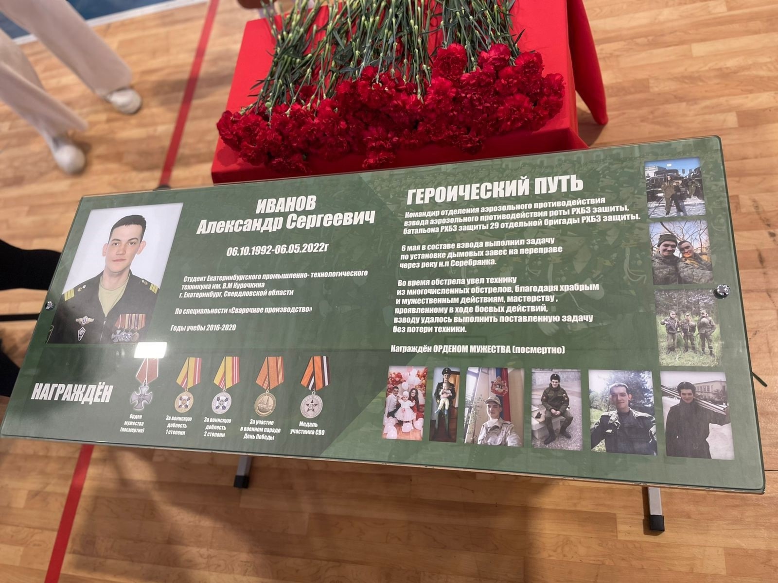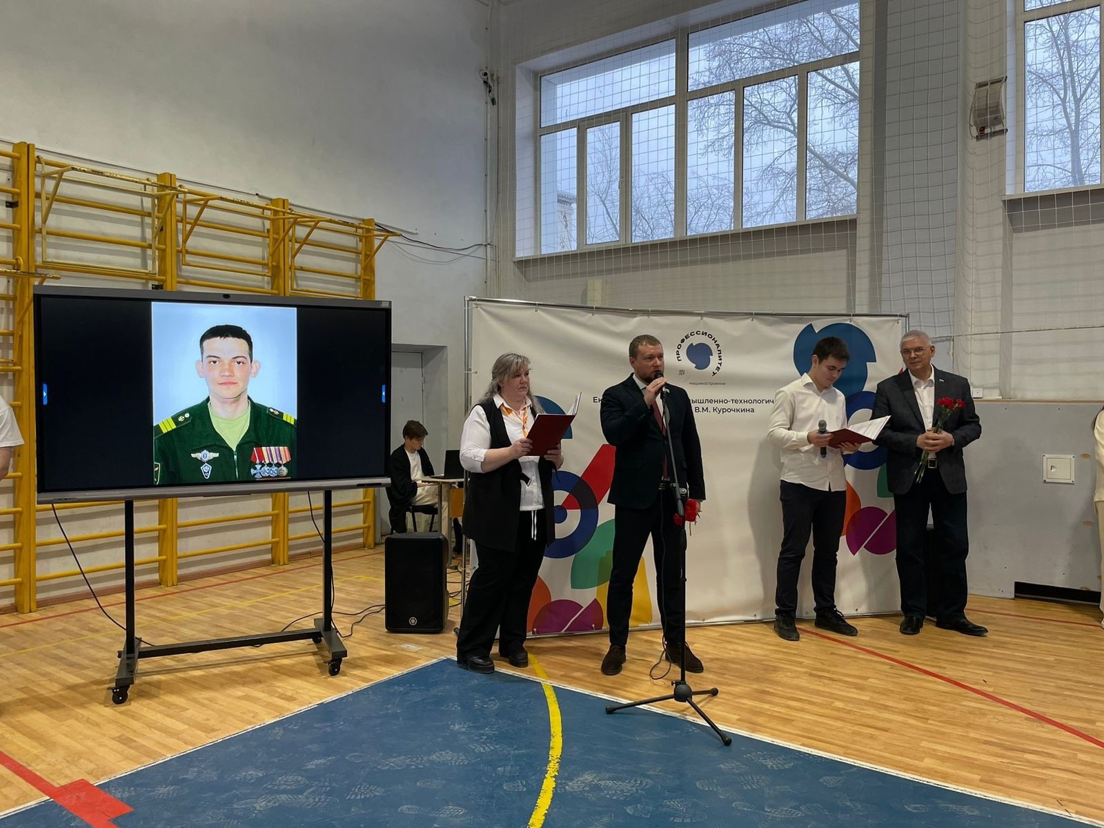 "Парта героя" установлена в Екатеринбургском промышленно-технологическом техникуме им. В.М. Курочкина, где учился боец СВО.