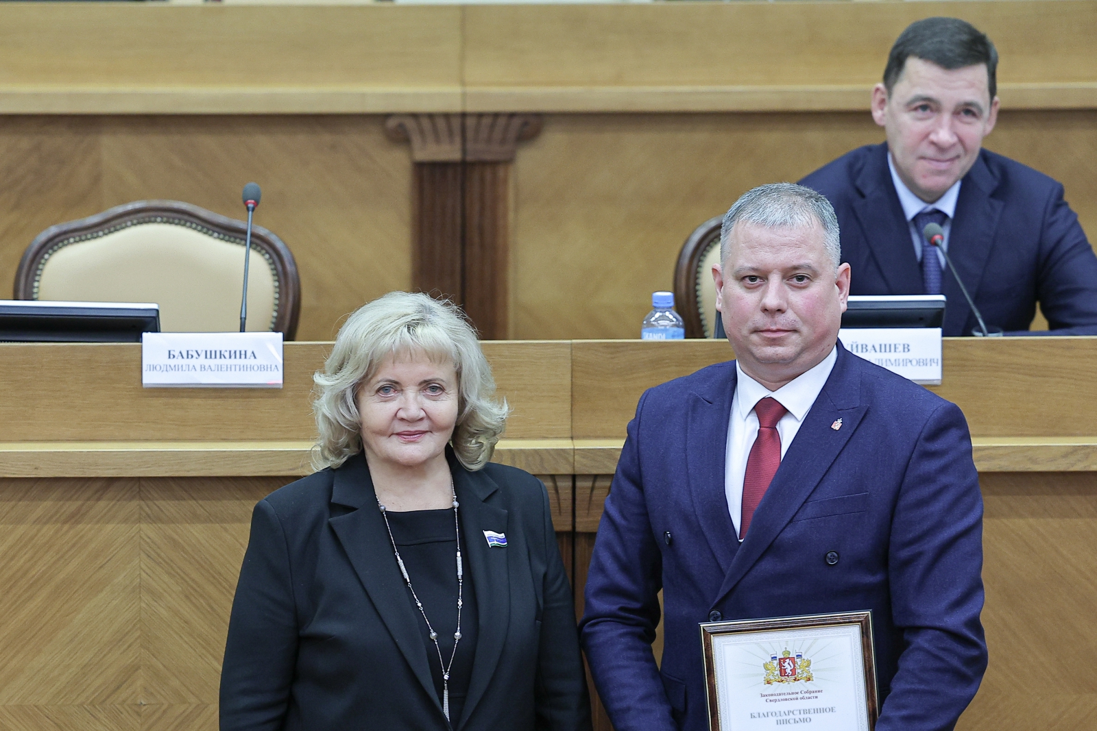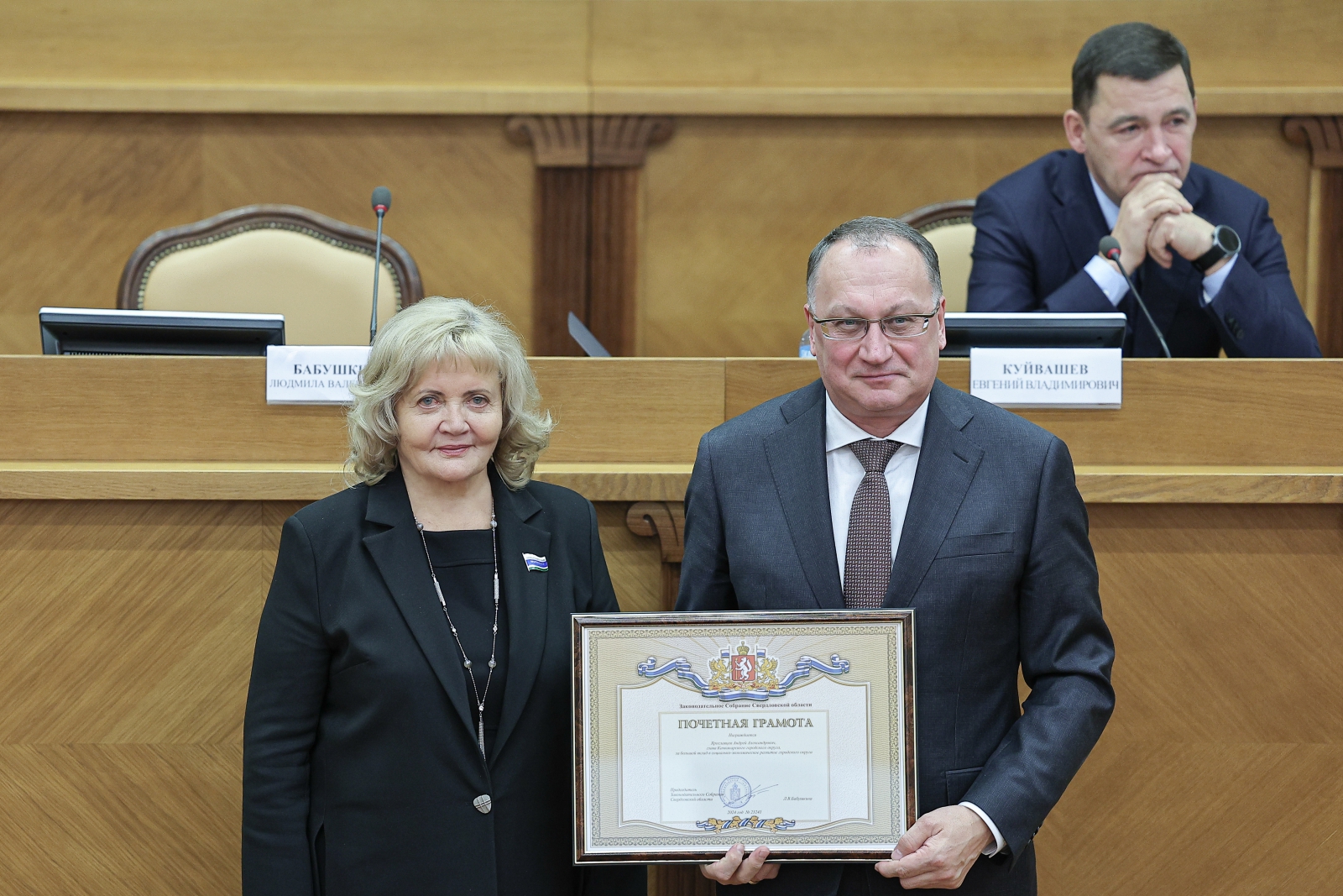 Председатель Заксо наградила главу городского округа Верхний Тагил Василия Кириченко и главу Качканарского городского округа Андрея Ярославцева почётными грамотами, а главу Алапаевска Дениса Толмачёва благодарственным письмом Законодательного Собрания.