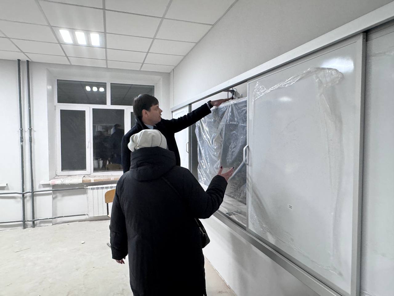 Во время очередного рабочего визита в Рефтинский городской округ, Михаил Зубарев проверил ход работ по капремонту школы №15.