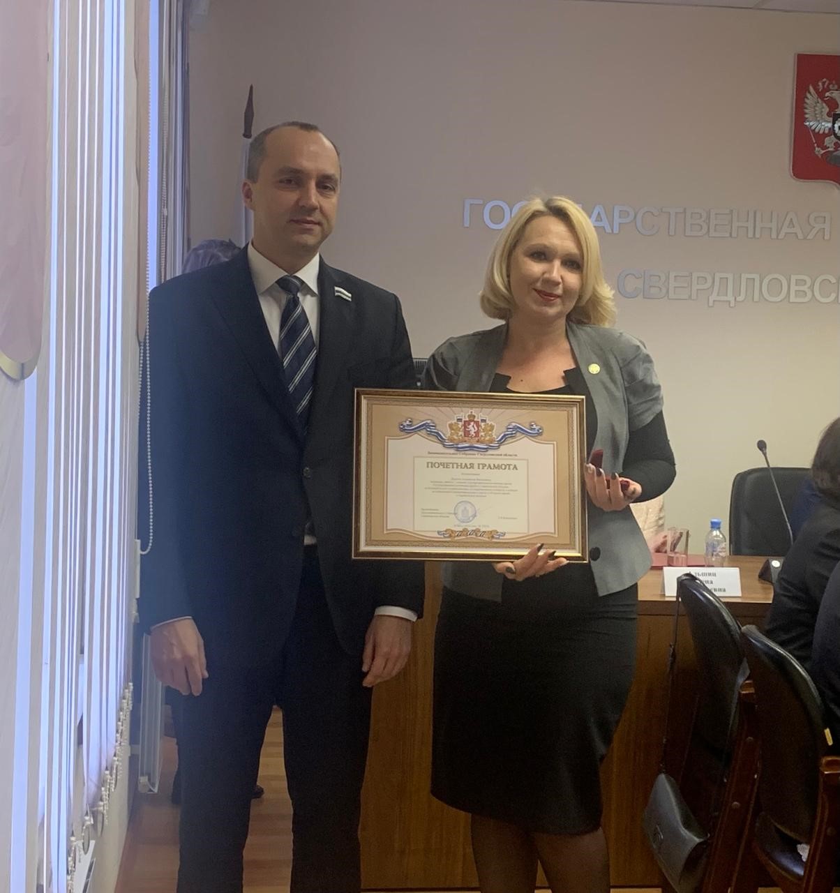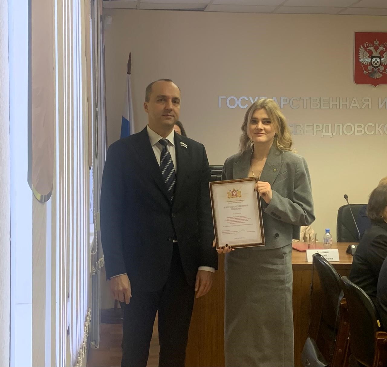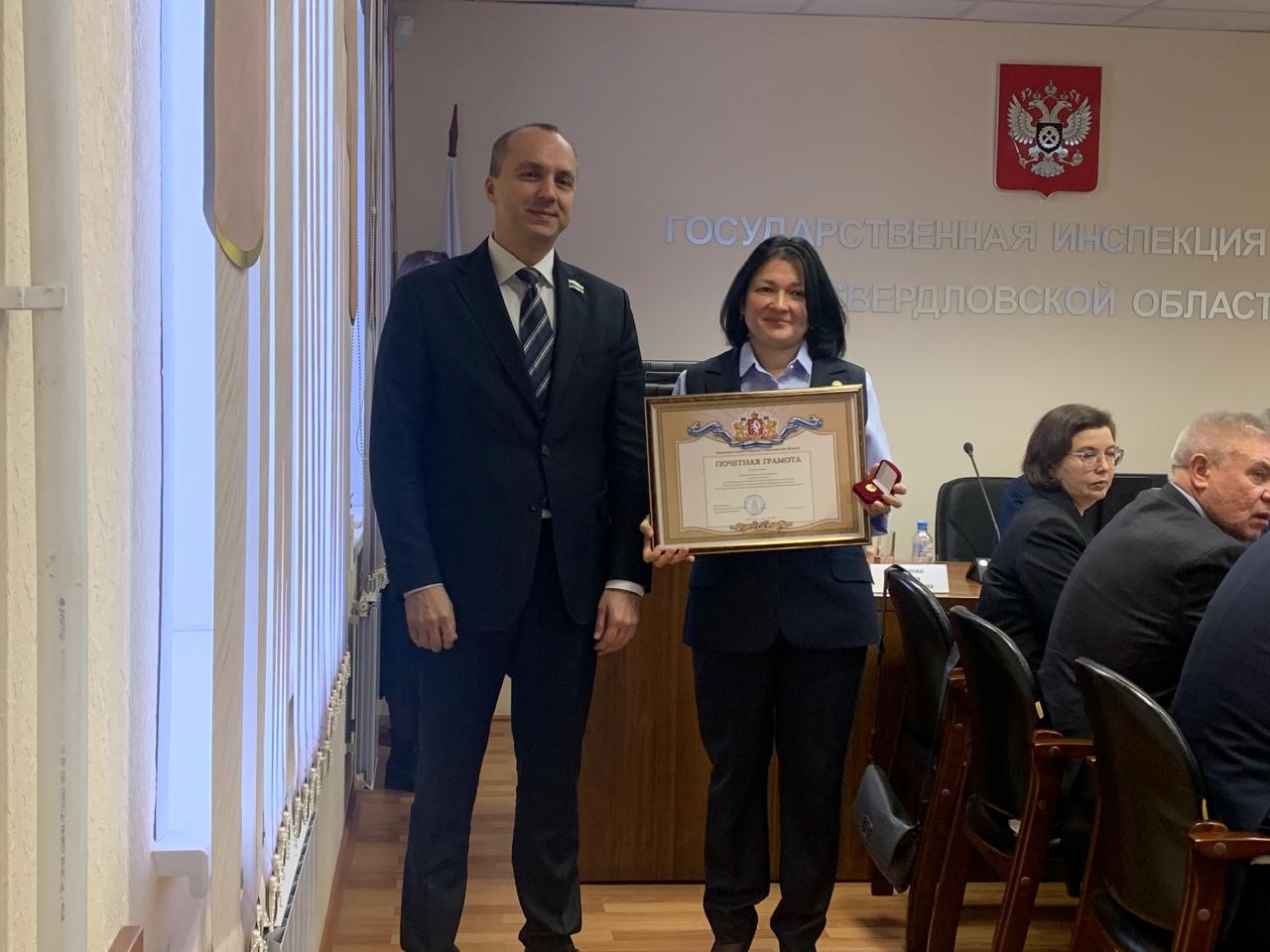 Депутат вручил почётные грамоты Законодательного Собрания Свердловской области сотрудникам инспекции Анастасии Долговой и Елене Дубровиной, благодарственные письма Заксо Анне Беленковой и Екатерине Коровиной.