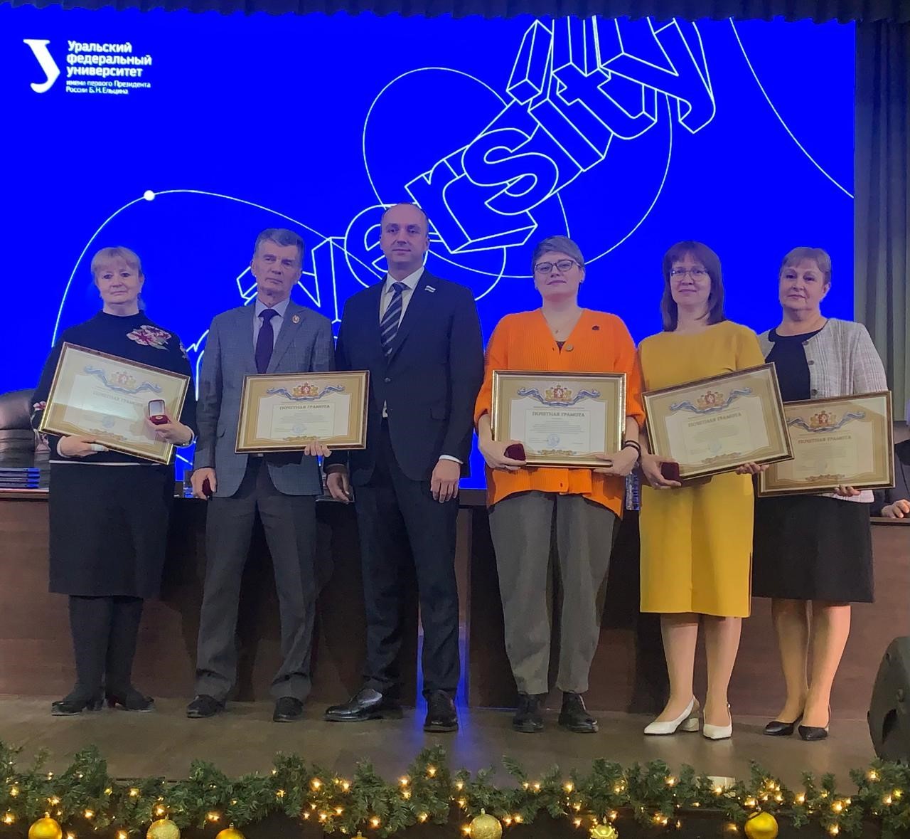 За многолетний добросовестный труд почётными грамотами награждены сотрудники вуза: Надежда Атепаева, Тамара Кирьянова, Нина Лаженцева, Лев Мальцев, Вера Морозова, Александр Палкин, Анастасия Ходак, Марина Чернова, Владимир Чернышев. Серебряные знаки Законодательного Собрания Свердловской области вручены Елене Авраменко и Вячеславу Шихирину.