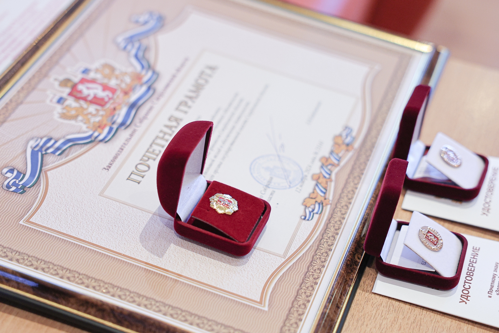 Золотым знаком Законодательного Собрания Свердловской области отмечены министр финансов региона Александр Старков и начальник управления межбюджетных отношений-начальник отдела территориальных бюджетов министерства финансов Свердловской области Елена Королькова.