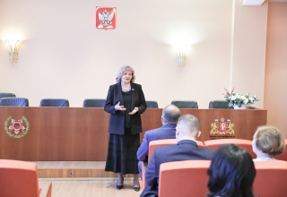 Председатель Законодательного Собрания Людмила Бабушкина поприветствовала участников собрания в министерстве финансов Свердловской области, посвящённом подведению итогов 2024 года.