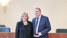 Золотым знаком Законодательного Собрания Свердловской области отмечены министр финансов региона Александр Старков и начальник управления межбюджетных отношений-начальник отдела территориальных бюджетов министерства финансов Свердловской области Елена Королькова.