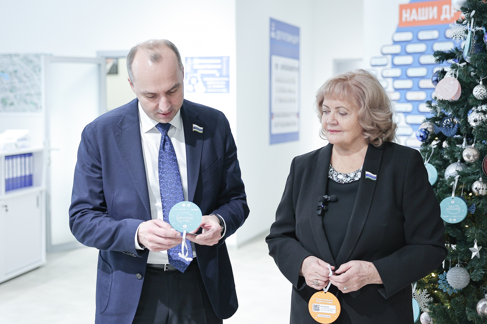 Председатель Законодательного Собрания Свердловской области Людмила Бабушкина вместе с депутатами Дмитрием Жуковым, Михаилом Клименко и Вячеславом Малых приняла участие в акции «Ёлка желаний» в Штабе общественной поддержки партии «Единая Россия» в Екатеринбурге.