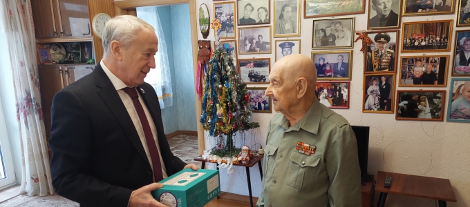 Председатель комитета по социальной политике Вячеслав Погудин в рамках Всероссийской акции «С Новым годом, ветеран!» встретился в Нижнем Тагиле с участником Великой Отечественной войны Александром Васильевичем Фединым.