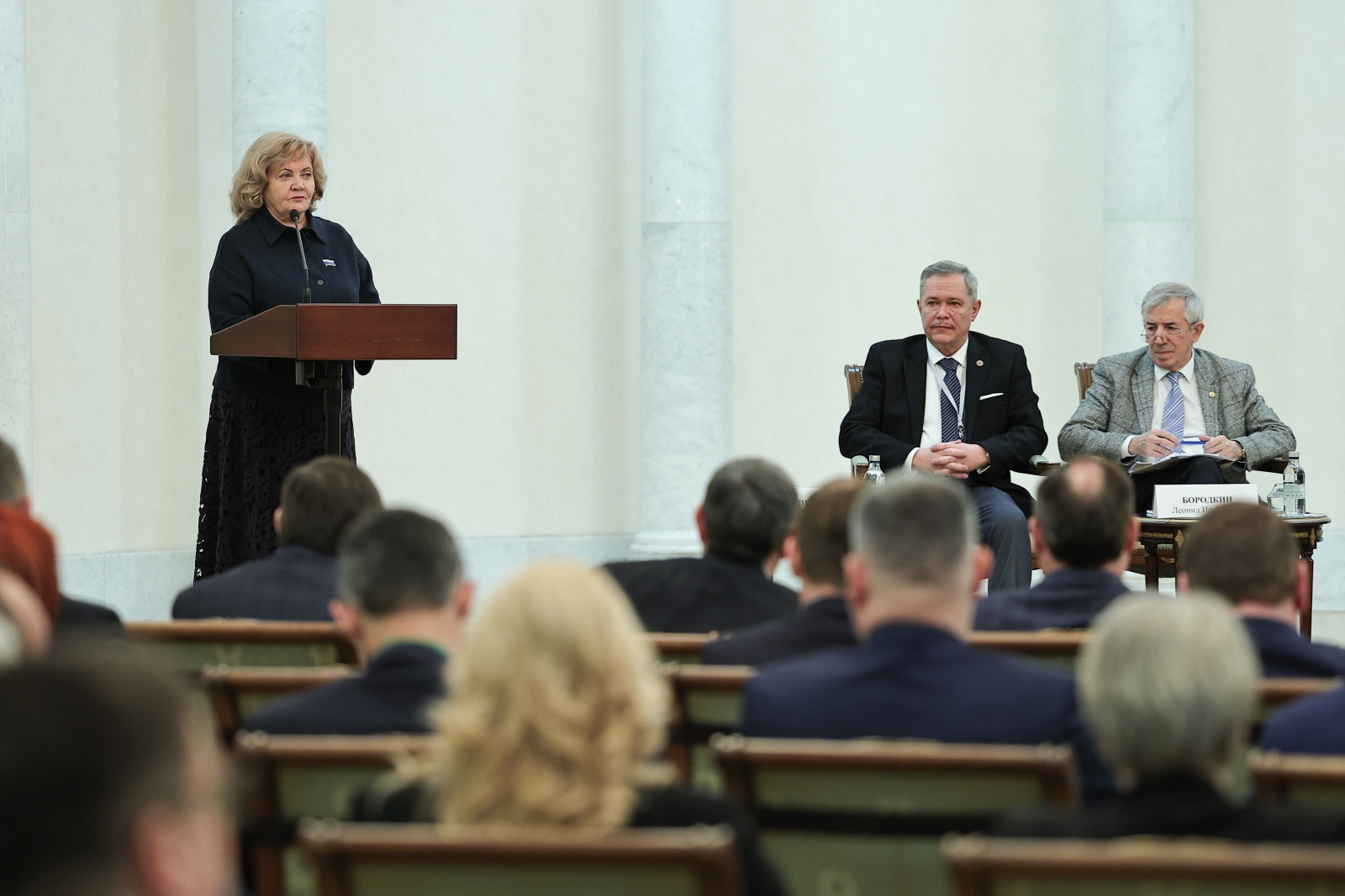 Участие в пленарном заседании также приняли исполняющий обязанности губернатора Свердловской области Алексей Шмыков, глава Екатеринбурга Алексей Орлов, ректор Уральского федерального университета имени Б.Н. Ельцина Виктор Кокшаров.