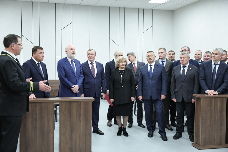К участникам церемонии открытия суда обратились губернатор Свердловской области Евгений Куйвашев, заместитель полномочного представителя Президента РФ в УрФО Александр Калиберда, председатель комитета Государственной Думы Федерального Собрания РФ по государственному строительству и законодательству Павел Крашенинников, заместитель гендиректора Судебного департамента при Верховном Суде РФ Егор Игнащенко, глава Екатеринбурга Алексей Орлов и председатель Свердловского областного суда Владимир Дмитриев.