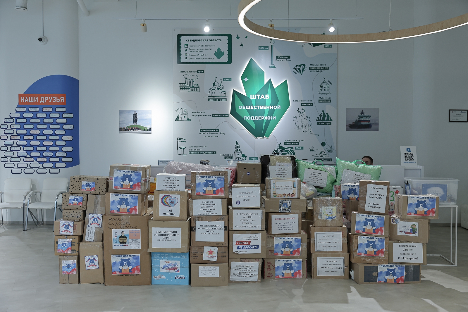 В Штабе общественной поддержки партии Единая Россия состоялась передача гуманитарного груза в рамках благотворительной акции «Тепло для героя». Акция – часть партийного проекта Единой России «Старшее поколение», координатором которого в Свердловской области является Людмила Бабушкина.
