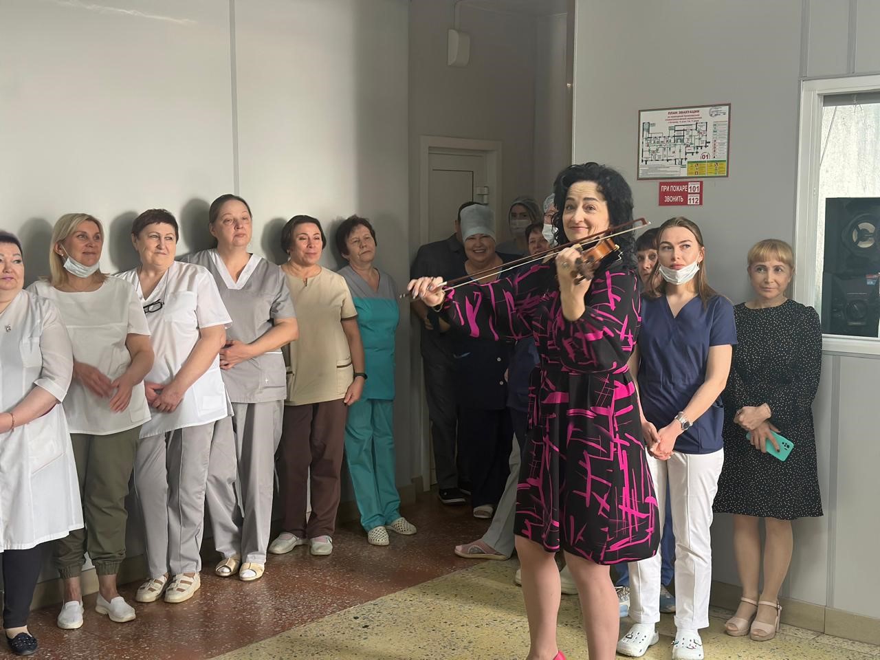 Для именинников – торты, тюльпаны, комплименты. И, конечно, творческий подарок. В этот день в стенах медицинского учреждения раздались потрясающие звуки скрипки. Такой мини-концерт людям в белых халатах подарила руководитель ансамбля скрипачей «Дивертисмент» Оксана Матис. Ее выступление медики встретили дружными аплодисментами.